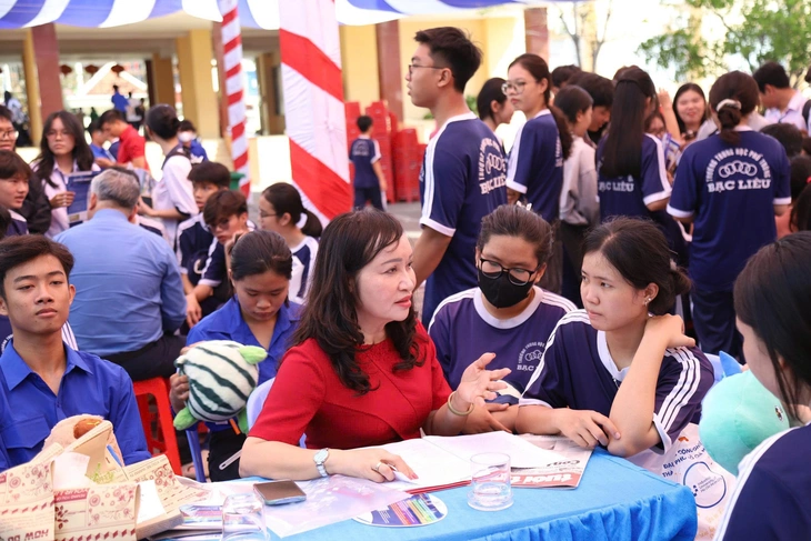 Các gian tư vấn trong chương trình tại phường Bạc Liêu vô cùng sôi động. Đáng chú ý, nhiều học sinh cũng chủ động tìm hiểu ngành nghề dựa trên tiêu chí gắn với nhu cầu nhân lực của địa phương.