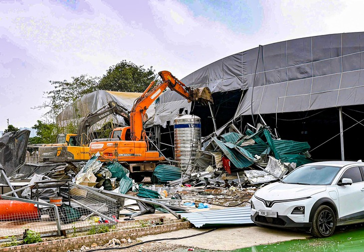 Cụm công trình gồm 22 sân pickleball bị cơ quan chức năng phường Thanh Liệt cưỡng chế tháo dỡ sáng 15-4 - Ảnh: UBND phường Thanh Liệt.