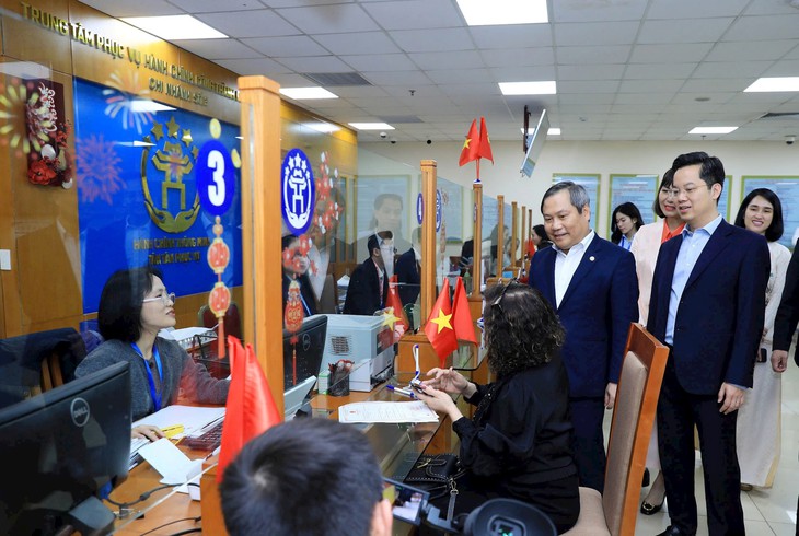 Ngày 23-2, ngày làm việc đầu tiên sau kỳ nghỉ Tết Nguyên đán Bính Ngọ 2026, Chủ tịch UBND TP Hà Nội Vũ Đại Thắng cùng đoàn công tác của TP đã đi kiểm tra công vụ, động viên cán bộ, công chức và chúc Tết tại chi nhánh số 3 Trung tâm Phục vụ hành chính công Hà Nội (Trung tâm) và phường Hoàn Kiếm.