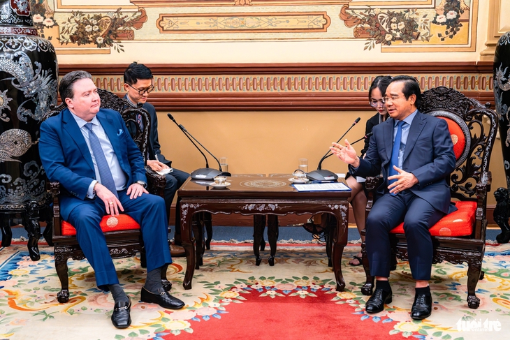 Chiều 8-1, Chủ tịch UBND TP.HCM Nguyễn Văn Được tiếp Đại sứ Mỹ tại Việt Nam Marc Knapper đến chào từ biệt - Ảnh: NGỌC ĐỨC