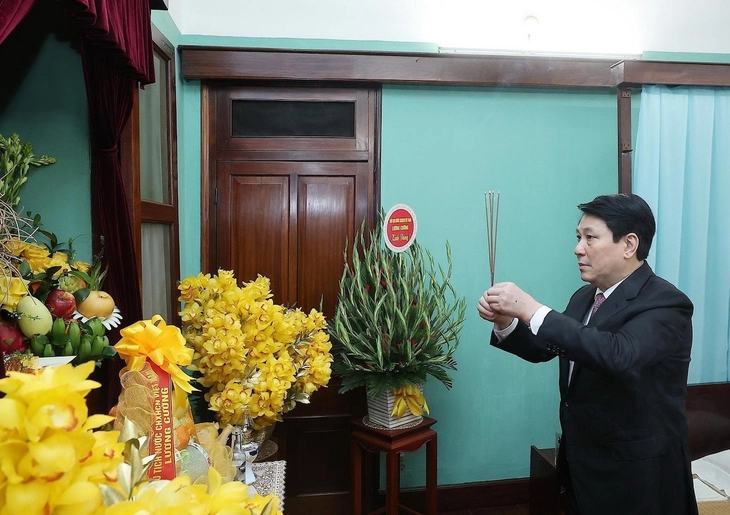 Trong không khí trang nghiêm, xúc động, Chủ tịch nước Lương Cường đã thành kính thắp nén hương thơm, bày tỏ lòng biết ơn vô hạn đối với Chủ tịch Hồ Chí Minh - vị lãnh tụ kính yêu của dân tộc Việt Nam.