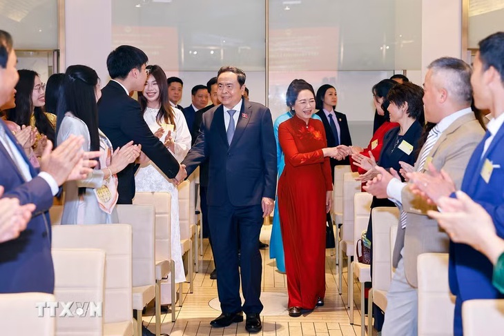 Chủ tịch Quốc hội Trần Thanh Mẫn gặp gỡ cộng đồng người Việt Nam tại Ý - Ảnh: TTXVN