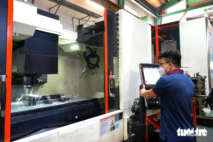 Tăng trưởng hai con số là điều kiện tiên quyết để Việt Nam bứt phá khỏi bẫy thu nhập trung bình. Trong ảnh: Công nhân vận hành máy tại Xưởng cơ khí Nhất Long, TP.HCM - Ảnh: HỮU HẠNH