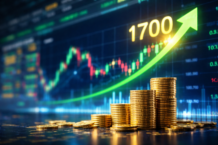 VN-Index hướng lên vùng 1.700 điểm - Ảnh: AI