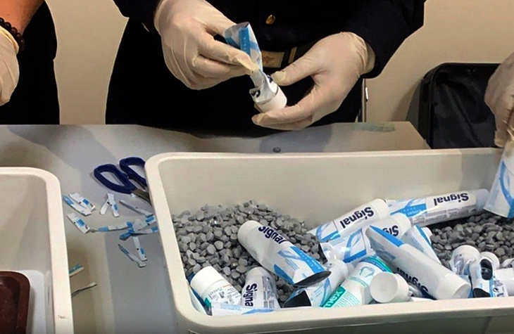Ma túy ngụy trang trong các tuýp kem đánh răng được vận chuyển từ Pháp về Việt Nam - Ảnh: Hải quan TP.HCM