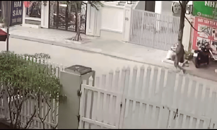 Theo đoạn clip được camera ghi lại, nạn nhân đang đi bộ thì bị một nam thanh niên chạy xe máy tông trúng, hất văng lên vỉa hè.