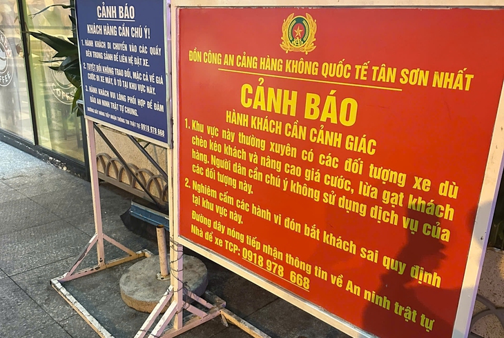 Một bảng cảnh báo ở nhà ga sân bay Tân Sơn Nhất. Cần thêm những giải pháp khác ngoài việc cảnh báo - Ảnh: N.P.CHÂU