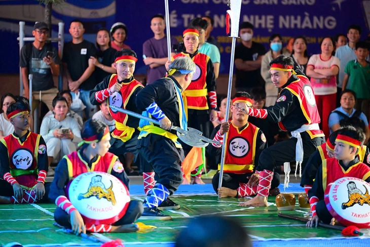 Cờ người võ thuật luôn tạo được không khí nhộn nhịp vào những dịp Tết đến xuân về - Ảnh: HỒ TƯỜNG