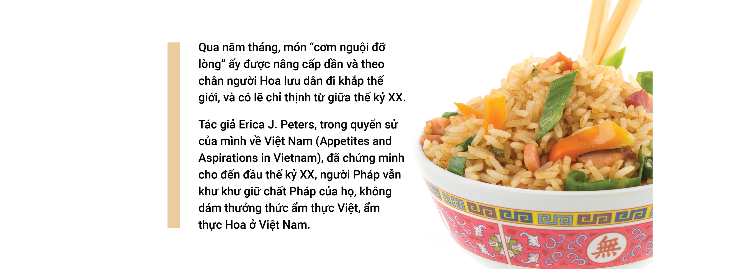 Để đối xử với món cơm còn dư lại từ ngày hôm trước, vào cái thời của một nhà nước huy động tối đa sức dân để làm những đại công trình như đào kinh Đại Vận hà, mở rộng Vạn Lý trường thành, người dân nghèo của Tàu đã sáng chế ra món cơm chiên.