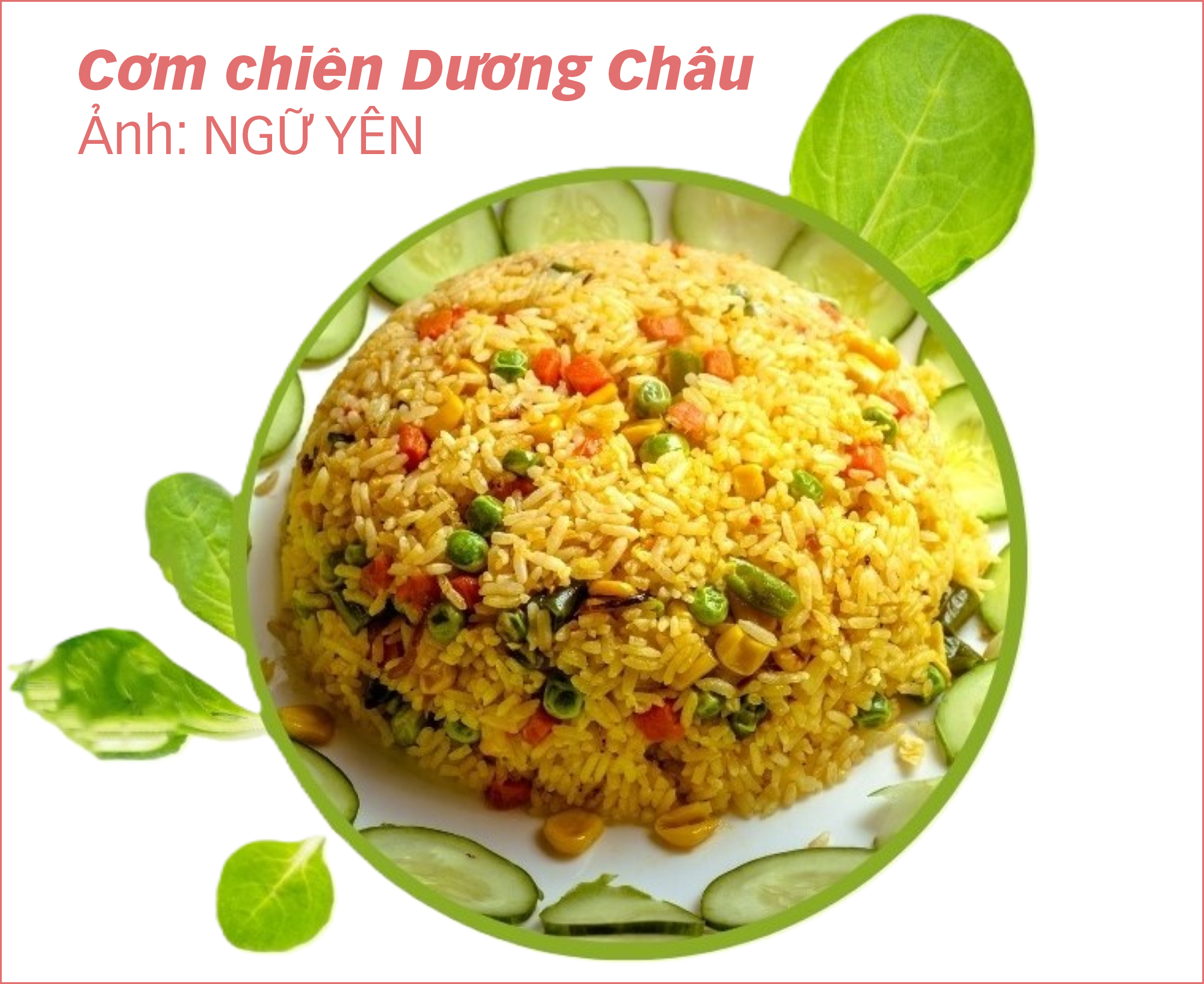 Món cơm chiên hoàn hảo nhất có lẽ là cơm chiên Dương Châu với loạn cào cào phiên bản và giao diện. Nhưng tựu trung vẫn cần những thành phần làm nên tính chất Trung Quốc: như lạp xưởng, xá xíu, trứng tạo màu vàng cho hột cơm.