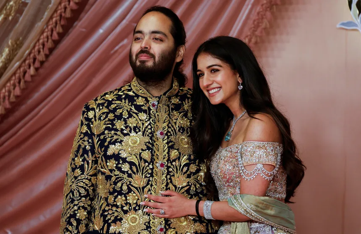 Doanh nhân Anant Ambani - con trai tỉ phú Ấn Độ Mukesh Ambani - cùng vợ Radhika Merchant - Ảnh: REUTERS