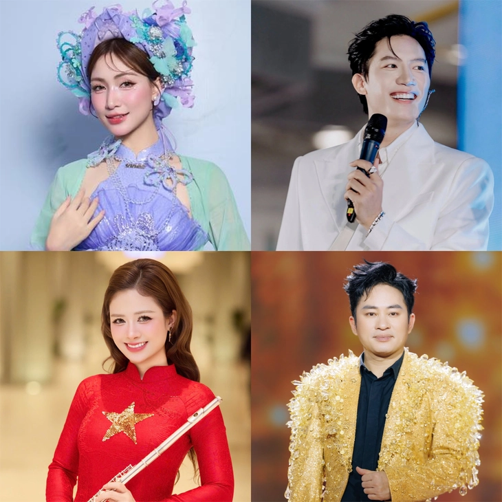 Hòa Minzy, Anh Tú, Dương Hoàng Yến, Tùng Dương hát tại Concert Âm vang Tổ quốc - Ảnh: FBNV