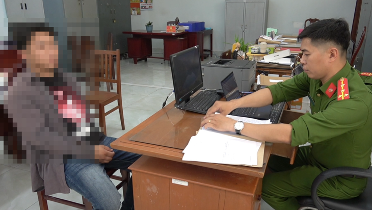 Cơ quan công an làm việc với T.V.H., người gây ra cái chết cho một người khác sau cuộc nhậu - Ảnh: LÊ HOÀI