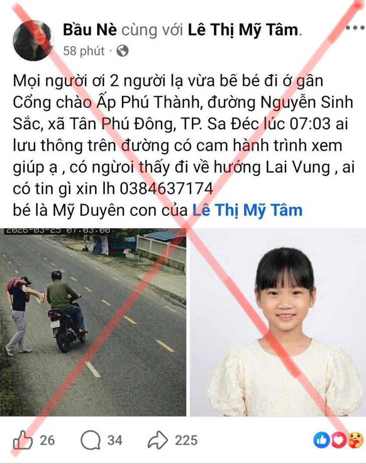 Theo Công an xã Tân Dương, lúc 8h20 cùng ngày, công an xã phát hiện một tài khoản Facebook đăng tải bài viết có nội dung liên quan vụ bắt cóc trẻ em xảy ra tại gần cổng chào ấp Phú Thành, đường Nguyễn Sinh Sắc, xã Tân Phú Đông, TP Sa Đéc (nay là xã Tân Dương, tỉnh Đồng Tháp) gây xôn xao dư luận, ảnh hưởng tình hình an ninh, trật tự tại địa phương.
