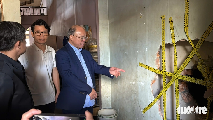 Ông Trương Công Thái - Phó chủ tịch UBND tỉnh Đắk Lắk (phải) - đến hiện trường nơi lực lượng phòng cháy chữa cháy đục tường tiếp cận nạn nhân - Ảnh: TRUNG TÂN