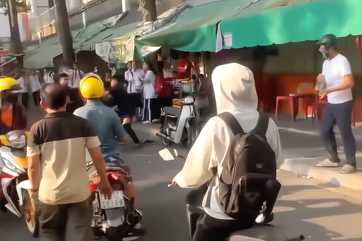 Theo đó, khoảng 16h20 ngày 8-4, tại quán nước đối diện cổng số 5 (đường Triệu Quang Phục) Trường THCS Hồng Bàng, em T.V.M. (18 tuổi) đang ngồi uống nước cùng bạn là H.T.G. (20 tuổi) thì bị 2 nam thanh niên bất ngờ lao vào tấn công bằng nón bảo hiểm. Tiếp đó, các đối tượng tiếp tục kéo nhau ra ngoài quán xô xát.