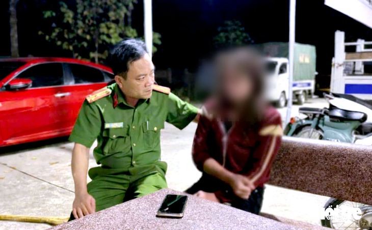 Thượng tá Lê Thanh Tuân - Trưởng Công an xã Buôn Đôn - động viên chị H. - Ảnh: HOÀNG MINH