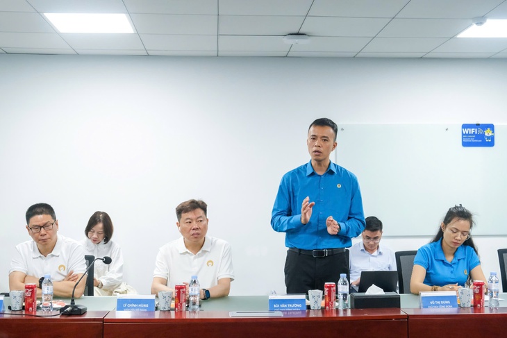 Ông Bùi Văn Trường - Chủ tịch Công đoàn Công ty TNHH Luxshare-ICT (Vân Trung) - chia sẻ những kiến nghị của công nhân.