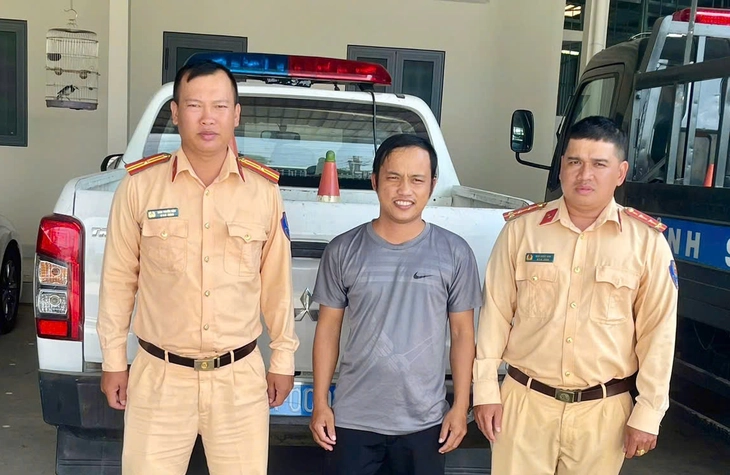 Anh Công quay lại cảm ơn hai cảnh sát giao thông đã giúp anh đưa mẹ đi cấp cứu kịp thời - Ảnh: A.V.