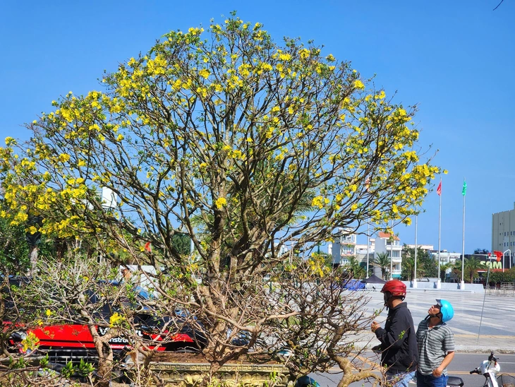 Cụ mai vàng có tuổi đời hơn 60 năm xuất hiện ở chợ hoa xuân Quảng Ngãi thu hút người dân thưởng lãm - Ảnh: TRẦN MAI