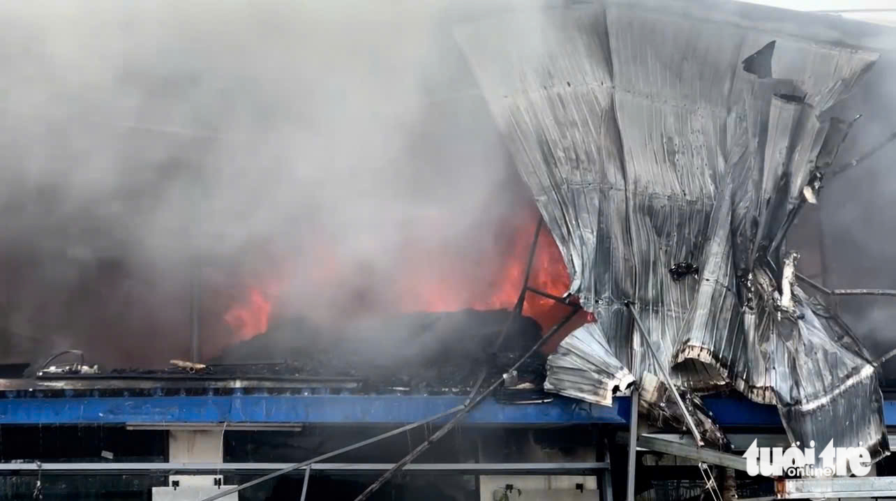 Đám cháy bùng phát dữ dội, kèm theo nhiều tiếng nổ. Theo ghi nhận ban đầu, đám cháy không gây thiệt hại về người.