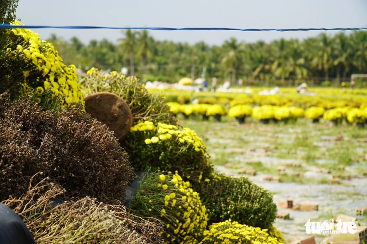 Nhiều vườn cúc mâm xôi do nở không đúng dịp nên nhà vườn nhổ bỏ sớm để trồng các loại bông ngắn ngày khác - Ảnh: MẬU TRƯỜNG
