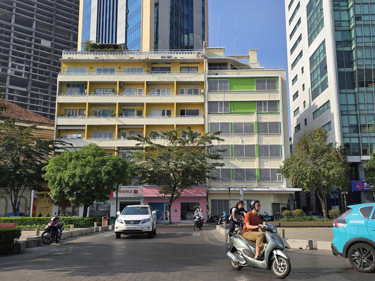 Tòa nhà cũ kỹ nhuốm màu thời gian cuối đường Nguyễn Huệ đã được sơn lại tươi tắn - Ảnh: ÁI NHÂN