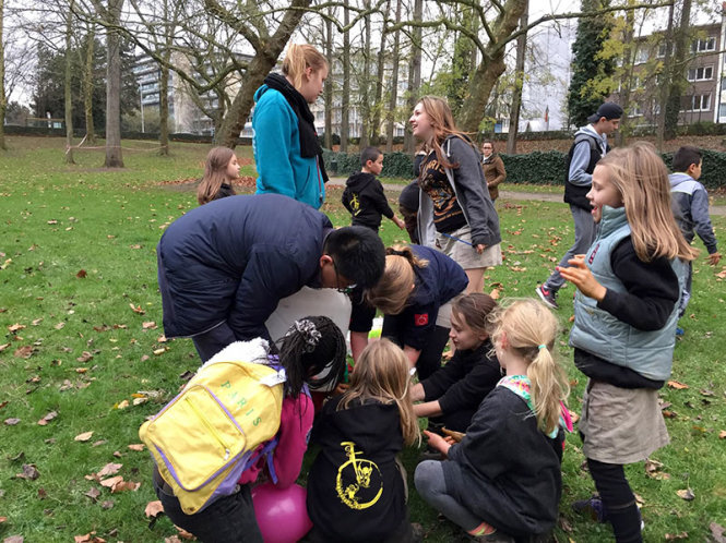 | Trẻ em Bỉ vẫn thoải mái tụ tập tham gia hoạt động ngoài trời ở quận "khủng bố" Molenbeek, Brussels, Bỉ - Ảnh: Ngọc Diệp |