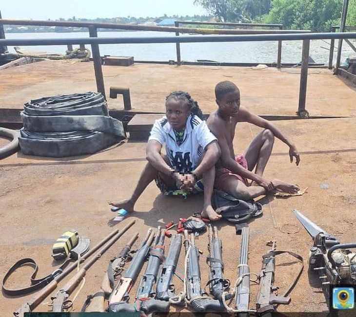 Ngày 11-1-2025, hải quân Nigeria đột kích trại cướp biển bắt giữ hai tên tại làng Fununu. Nhiều tên khác đã tẩu thoát - Ảnh: globalupfront.com