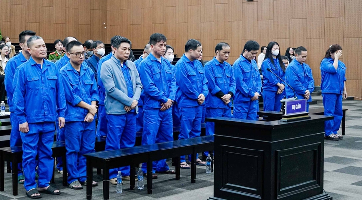 Các bị cáo tại tòa - Ảnh: GIANG LONG