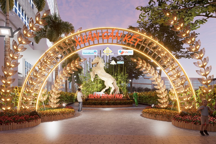 Cộng hưởng cùng các tiểu cảnh về linh vật của năm Bính Ngọ là những tiểu cảnh thể hiện chủ để "Xuân gắn kết" của Hội hoa xuân Phú Mỹ Hưng 2026. Nổi bật là cụm tiểu cảnh Xuân gắn kết - Vững bước tương lai nằm ở vị trí trung tâm của Đường hoa Phú Mỹ Hưng 2026.