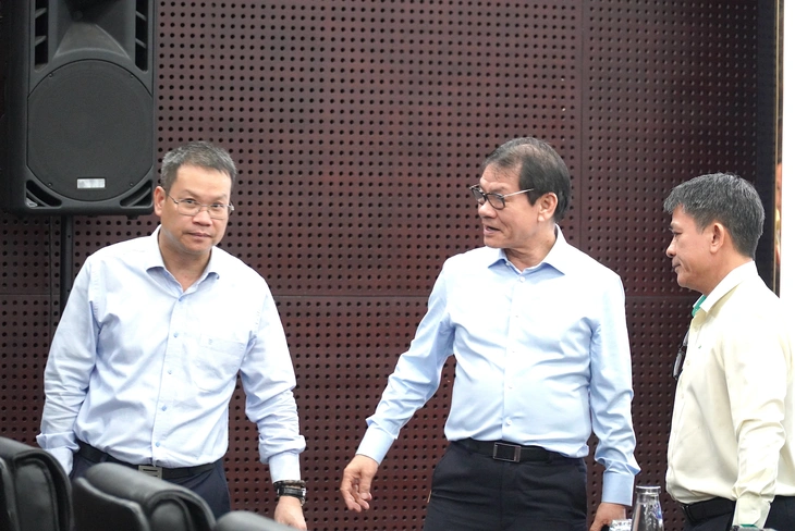 Tỉ phú Trần Bá Dương (giữa) và Chủ tịch UBND TP Đà Nẵng Nguyễn Mạnh Hùng (bên trái) trong buổi làm việc chiều 20-4 - Ảnh: TRƯỜNG TRUNG