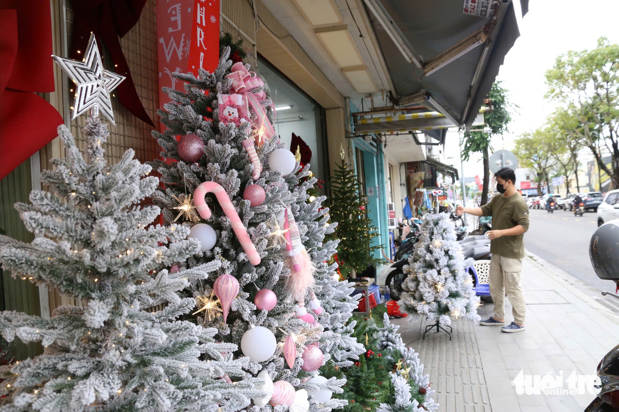 Cây thông Noel có giá từ khoảng 500.000 đồng đến vài triệu đồng, tùy kích thước và chất liệu cũng kén khách - Ảnh: THANH NGUYÊN