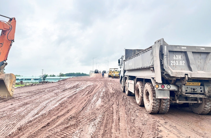 Thi công đường dẫn lên cầu Văn Ly - Ảnh: LÊ TRUNG