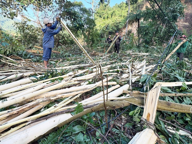 Người dân vùng cao TP Đà Nẵng thu hoạch cây keo lai - Ảnh: B.D.