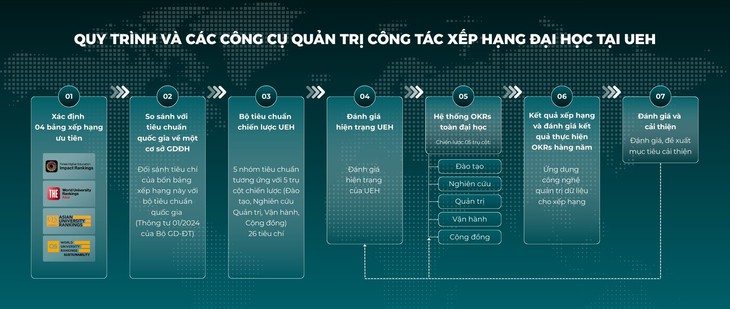 Quy trình và các công cụ quản trị công tác xếp hạng đại học tài UEH - Ảnh: UEH