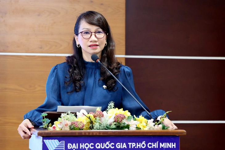 GS.TS Nguyễn Thị Thanh Mai - Giám đốc Đại học Quốc gia TP.HCM - chia sẻ trong chương trình gặp mặt các nhà khoa học trúng tuyển Chương trình VNU350 - Ảnh: TRỌNG NHÂN