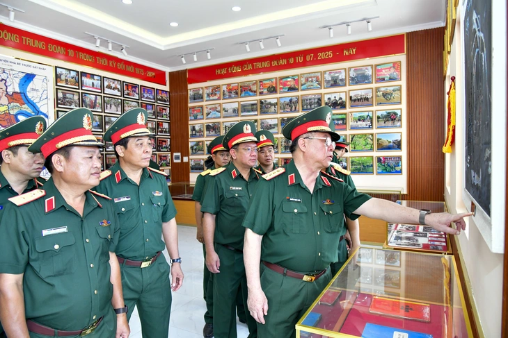 Tại buổi làm việc, sau khi trực tiếp kiểm tra và nghe chỉ huy Trung đoàn 10 báo cáo, Đại tướng Nguyễn Trọng Nghĩa ghi nhận, biểu dương những kết quả nổi bật mà cán bộ, chiến sĩ Trung đoàn 10 đã nỗ lực đạt được.