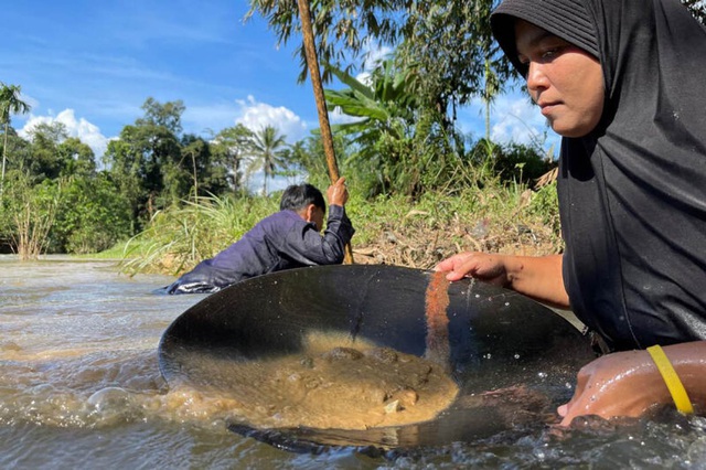 Trên sông Sai Buri (Thái Lan), Sunisa Srisuwanno nhấc máng gỗ từ dưới nước lên. Lớp bùn đất bẩn bị cuốn đi, để lại giữa máng là những hạt vàng kích thước lớn nhỏ lấp lánh. 'Chỗ này được 100 baht', Sunisa – bà mẹ hai con 37 tuổi - chỉ tay vào chỗ kim loại quý ít ỏi sau hơn 15 phút đãi vàng cùng chồng là Boonsom Aeamprasert.
