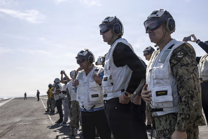 Quân đội Mỹ thông báo hai nhà đàm phán hàng đầu của Tổng thống Donald Trump về vấn đề Iran, Steve Witkoff và Jared Kushner, đã thăm tàu sân bay USS Abraham Lincoln ở biển Ả Rập ngày 7-2, giờ địa phương.