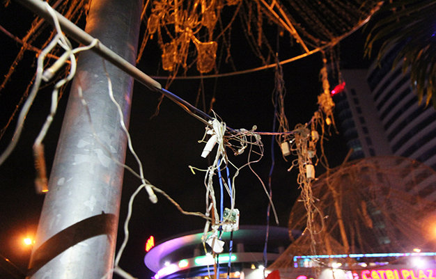 Sau một thời gian ngắn đưa vào sử dụng, vài tháng trở lại đây người dân thành phố bức xúc trước việc hệ thống đèn trang trí nghệ thuật không hoạt động mà còn tiềm ẩn nhiều nguy hiểm cho người đi đường khi những chiếc "nón lá" nặng đến hàng tạ treo lủng lẳng trên cao bằng một sợi cáp mỏng manh.