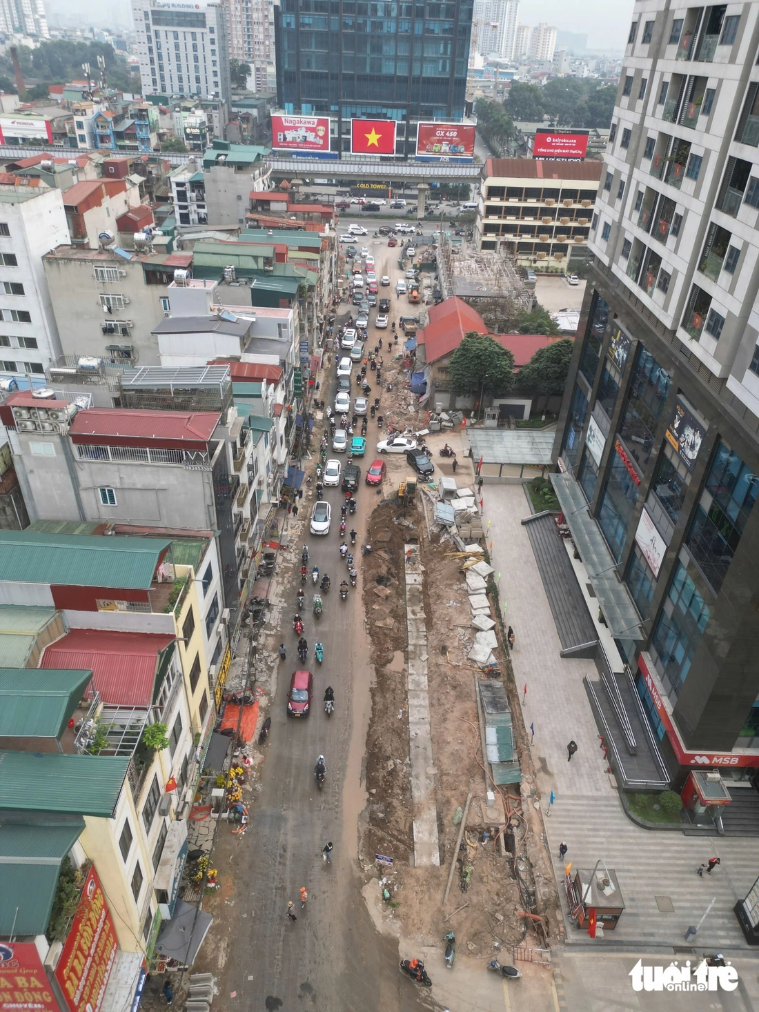Công trường ngổn ngang, bụi bặm kéo dài, trong khi tình trạng ùn tắc giao thông ngày càng nghiêm trọng hơn, trở thành nỗi ám ảnh thường trực đối với các hộ dân sinh sống dọc tuyến đường cũng như tiểu thương đang kinh doanh, buôn bán tại khu vực.