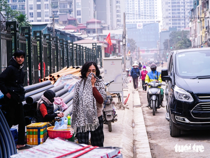 Chị Tú (chủ một tiệm bánh mì trên đường Nguyễn Tuân) cho biết cửa hàng mở cửa từ 7h sáng, nhưng đến khoảng 9h đã phải lau dọn bụi tới 3 lần do bụi bay mù mịt. Để đảm bảo vệ sinh an toàn thực phẩm, chị phải sử dụng các tấm vải che chắn bánh mì, hạn chế bụi bẩn bám vào sản phẩm.
