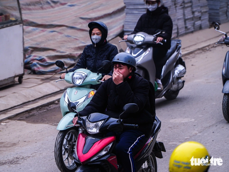 Người dân ra đường phải bịt kín mũi vì bụi bặm - Ảnh: PHẠM TUẤN