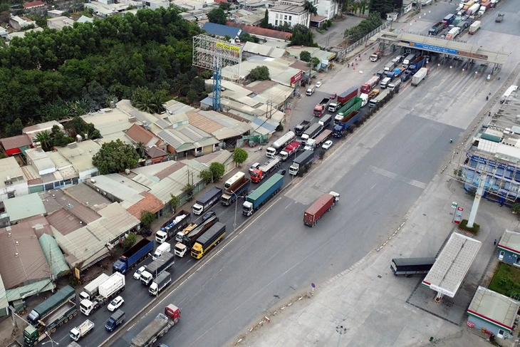 Quốc lộ 51 đoạn qua trạm thu phí T1 kẹt xe kéo dài do rào chắn thi công quốc lộ 51 - Ảnh: A LỘC