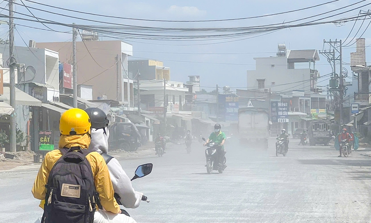 Theo phản ánh của người dân, trong thời gian nâng cấp đường Lò Lu (TP Thủ Đức cũ, TP.HCM), bụi xuất hiện rất nhiều, nhất là khi xe tải chở vật liệu ra vào công trường. Bụi phủ dày trên mái nhà, bàn ghế, hàng quán và xe đậu ven đường. Nhiều hộ phải che chắn, lau dọn liên tục nhưng "không ăn thua".