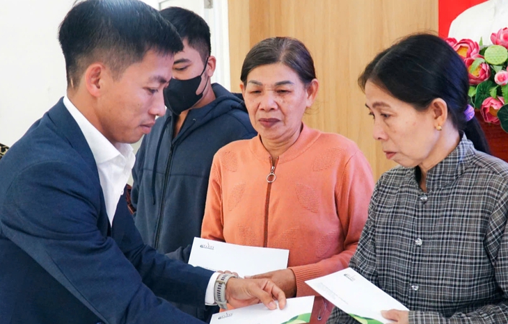 Ông Nguyễn Thanh Huy - Giám đốc kinh doanh GREENFEED Việt Nam khu vực Gia Lai, Khánh Hòa - tặng quà cho bà con xã Diên Điền - Ảnh: TRẦN HOÀI