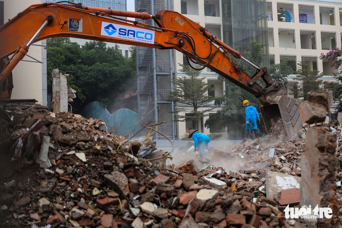Công nhân, máy móc đang tiến hành phá dỡ trụ sở, nhà dân trên khu đất "kim cương" sát hồ Gươm
