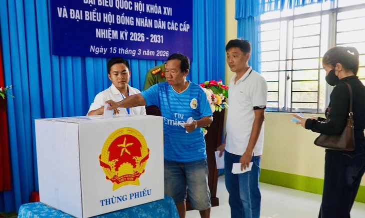 Cử tri phường Mỹ Trà, tỉnh Đồng Tháp bỏ phiếu bầu cử - Ảnh: ĐẶNG TUYẾT