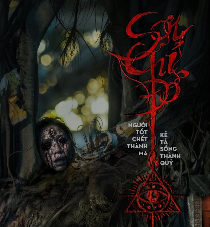 Poster Sợi chỉ đỏ, nổi bật với câu: "Người tốt chết thành ma, kẻ tà sống thành quỷ" - Ảnh: ĐPCC